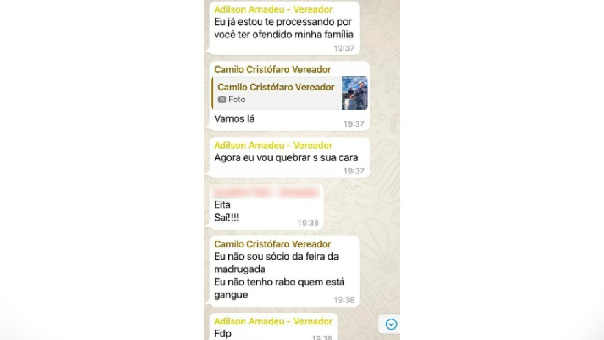 O portal teve acesso aos prints (capturas de tela) e os vereadores envolvidos confirmaram o desentendimento.