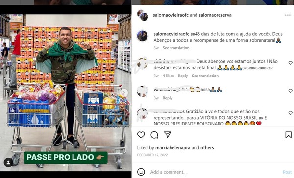 Em diversos vídeos publicados nas redes sociais, Salomão afirmava que estava no acampamento de bolsonaristas golpistas instalado desde novembro de 2022 em frente ao Círculo Militar, na Zona Sul da capital paulista.