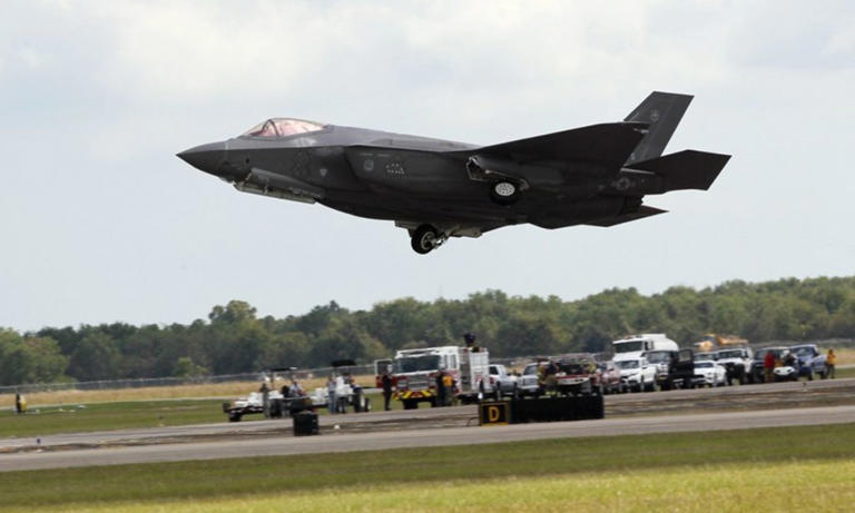 Caça F-35 realiza apresentação durante o Airshow anual Wings Over Houston no Texas.